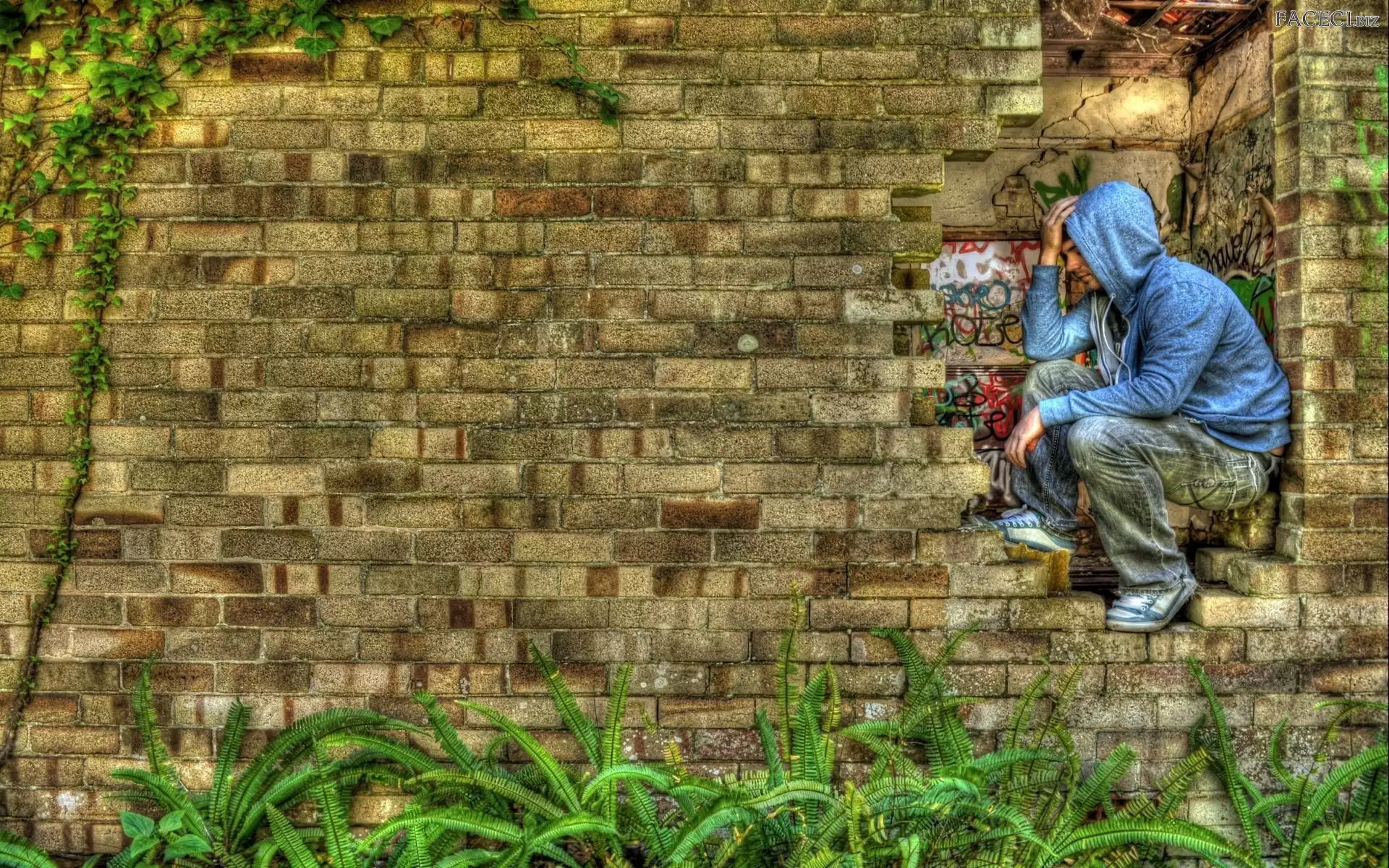 Chłopak, Ceglana, Ściana - faceci.biz